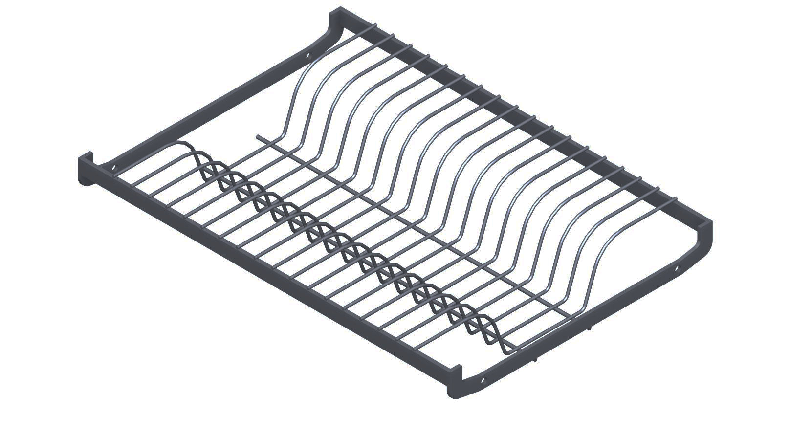 Astiankuivauskaappiin asennettava lautashylly. Väri antrasiitin harmaa ja materiaali pulverimaalattu metalli.