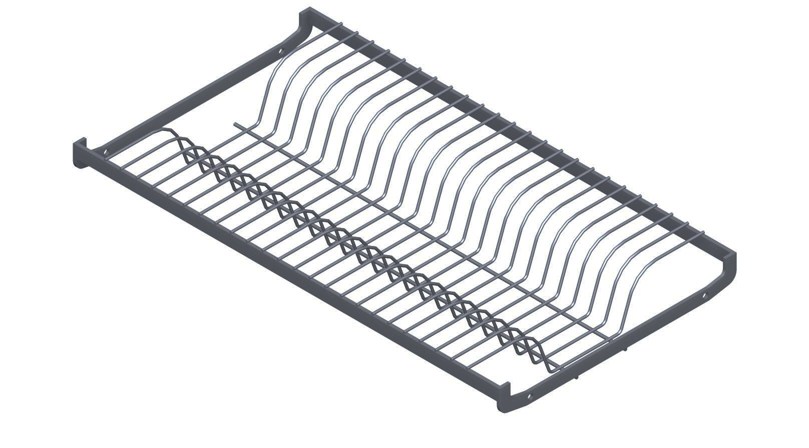 Astiankuivauskaappiin asennettava lautashylly. Väri antrasiitin harmaa ja materiaali pulverimaalattu metalli.