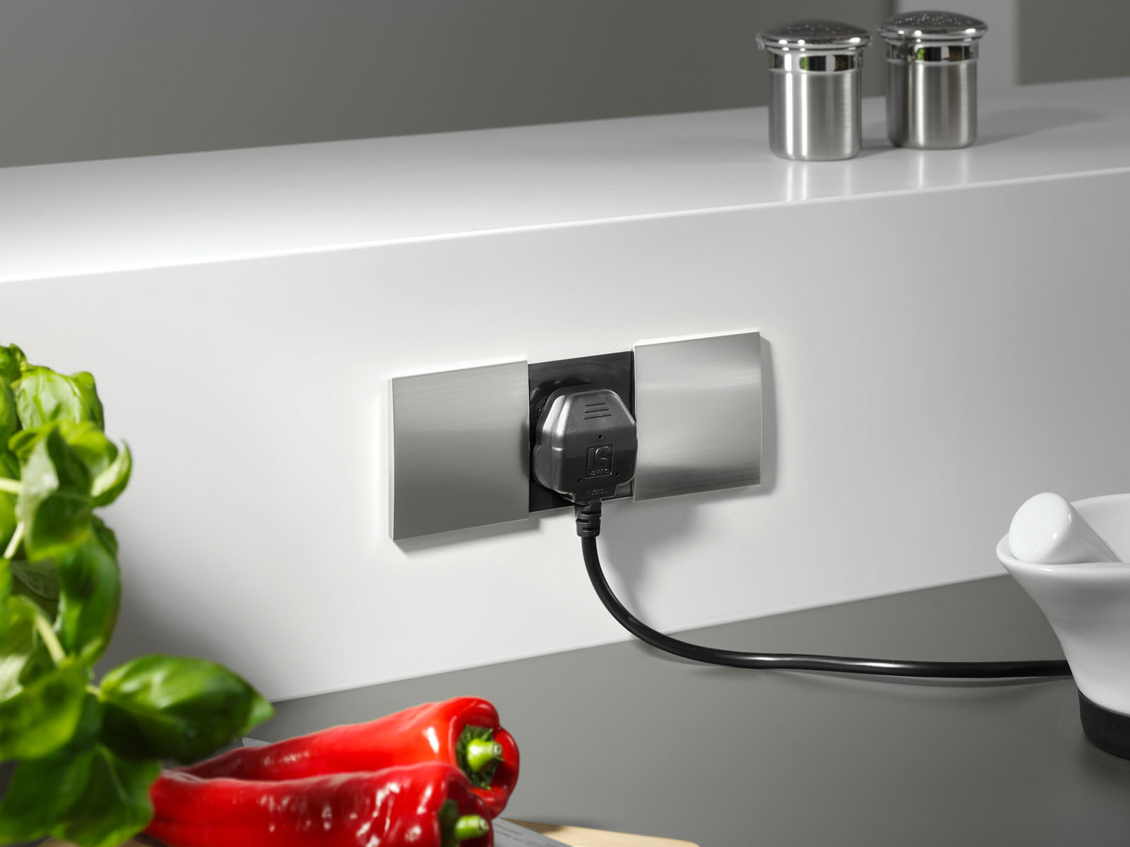 Kätevä ja tyylikäs pistorasia keittöön tai kodin muihin tiloihin. DUE-pistorasiayksikössä on sivuille aukeava jaettu kansi, jonka värin voit valita kolmesta eri sävystä ja näin pistorasia sopii moneen eri tyyliin luoden viimeistellyn sisustuksen.