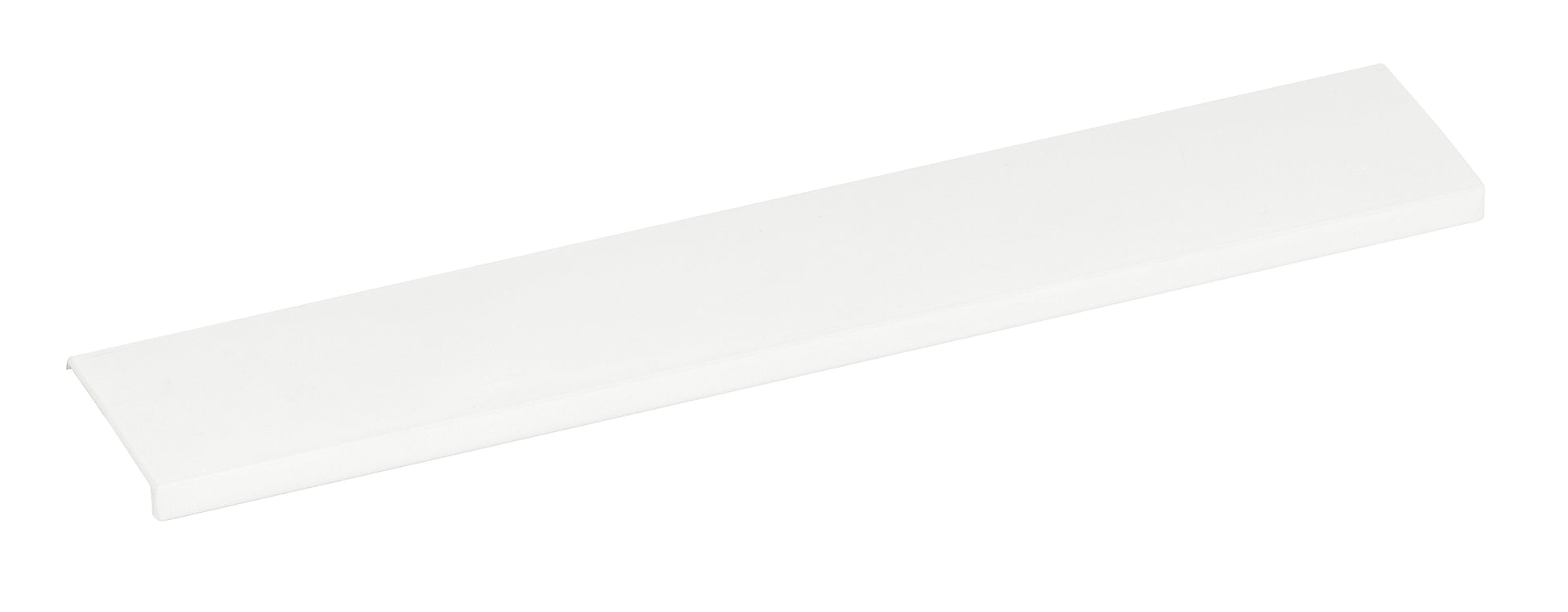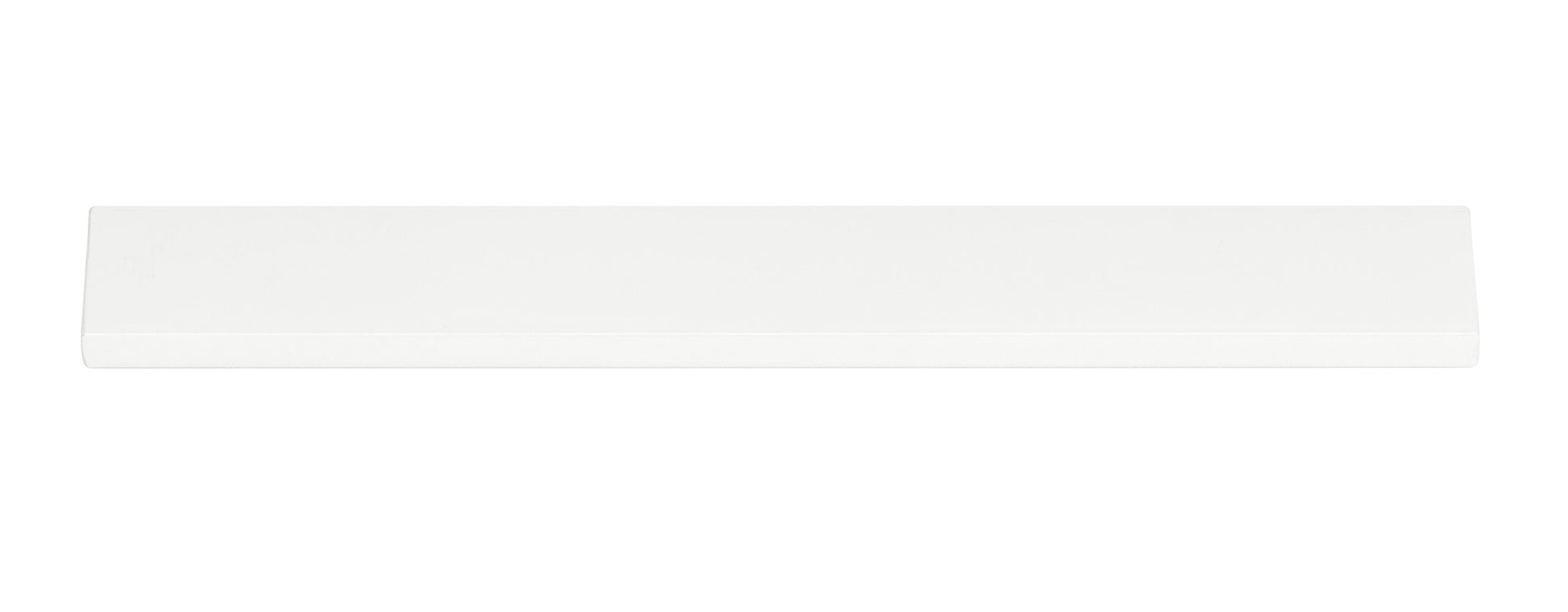 Linjakas ja siro Lungo lippavedin. Takana kiinnitysreiät vetimen kiinnittämiseen oven taustapintaan. Vetimen syvyys on mitattuna oven takapinnasta. Vetimen materiaali on alumiini ja väri mattavalkoinen.