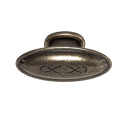Hillitysti koristeltu, patinoituneen näköinen rustiikkinuppivedin.