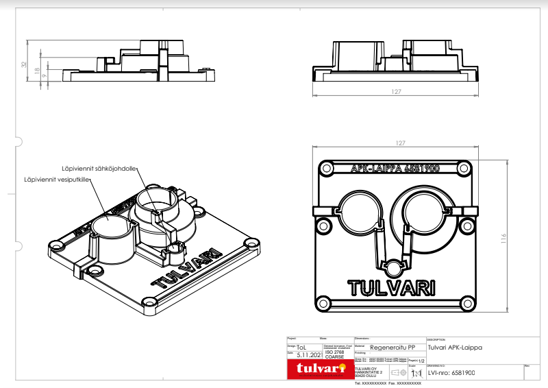 Astianpesukoneen tulo- ja poistoletkujen läpivienti, läpivientireiän halkaisija: 98-105 mm. Tuote soveltuu käytettäväksi myös suojaputkessa vedettävien käyttövesiputkien läpivientiin. Sisältää sähköjohdon läpiviennin. Tiivistetään pakkauksen omalla kaksipuolisella teipillä allaskaapin pohjaan. Helppo jälkiasentaa yhdistämällä kaksi laipan puolikasta läpivietyjen putkien ympärille.